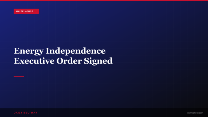 President Donald Trump signed a sweeping executive order on energy independence today, signaling an aggressive push to position America as the world’s dominant energy producer. The order, signed in the Oval Office, represents one of the administration’s most significant early policy moves targeting domestic energy production.